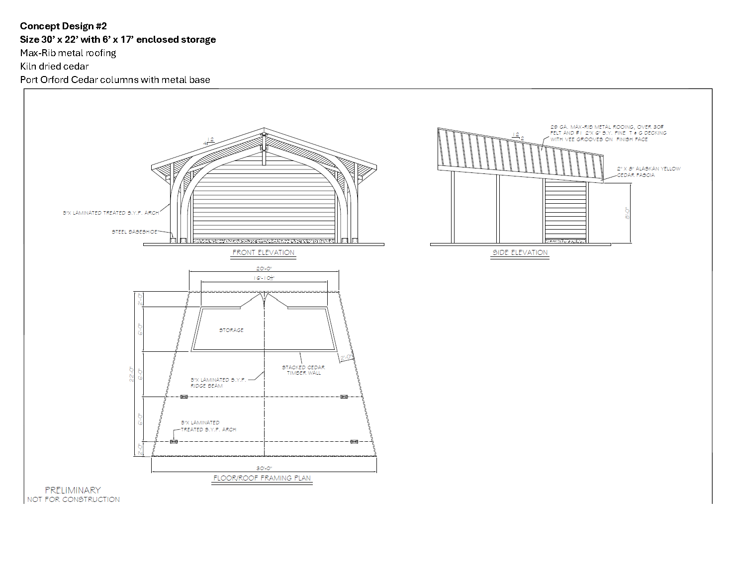 Please note: the images provided are concept renderings only. The final structure may differ in appearance once detailed design and procurement are complete. Stage size will be determined as part of the 2026 budgeting process.