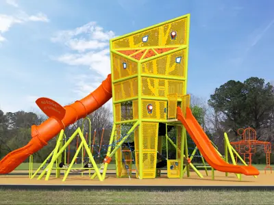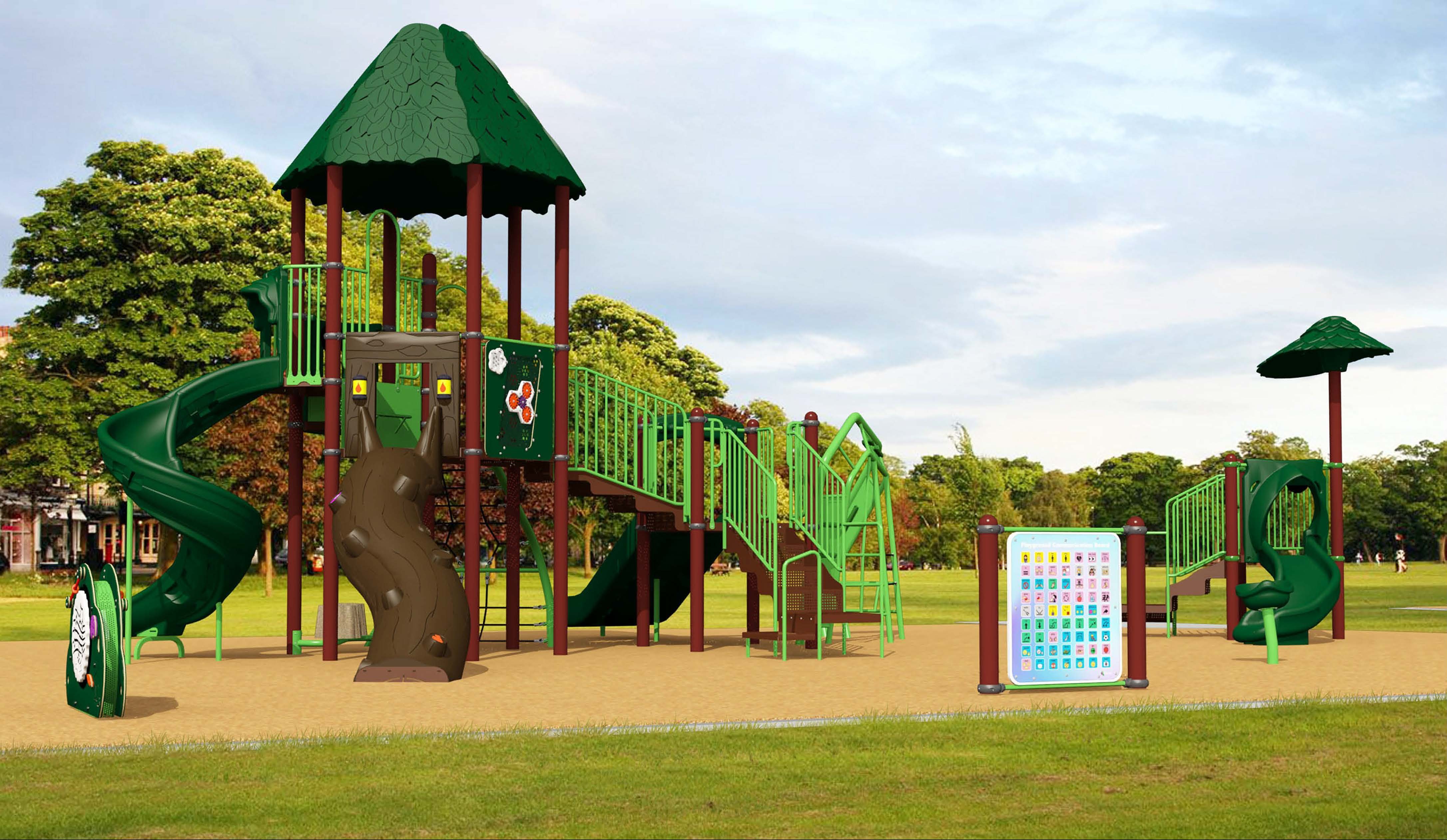 - A longer, fully ramped play structure